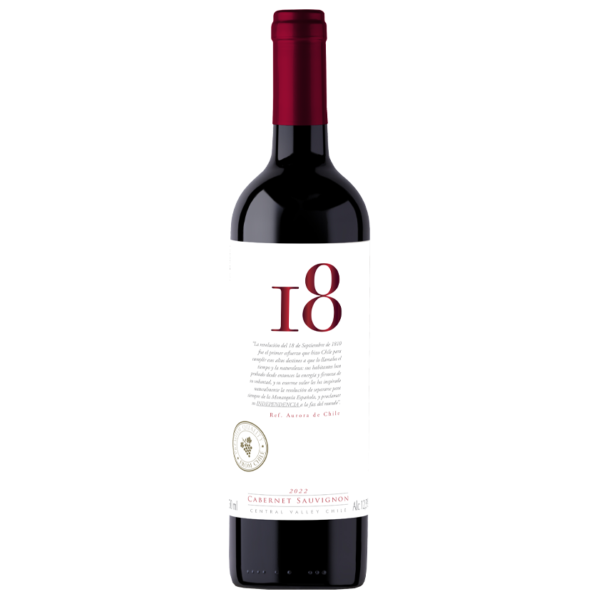El vino 18 Cabernet Sauvignon, un vino joven y frutal, ideal para disfrutar en todo momento.
